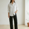 Kit para confeccionar esta camisa de corte elegante, limpio y moderno inspirada en los códigos de las camisas clásicas masculinas con: