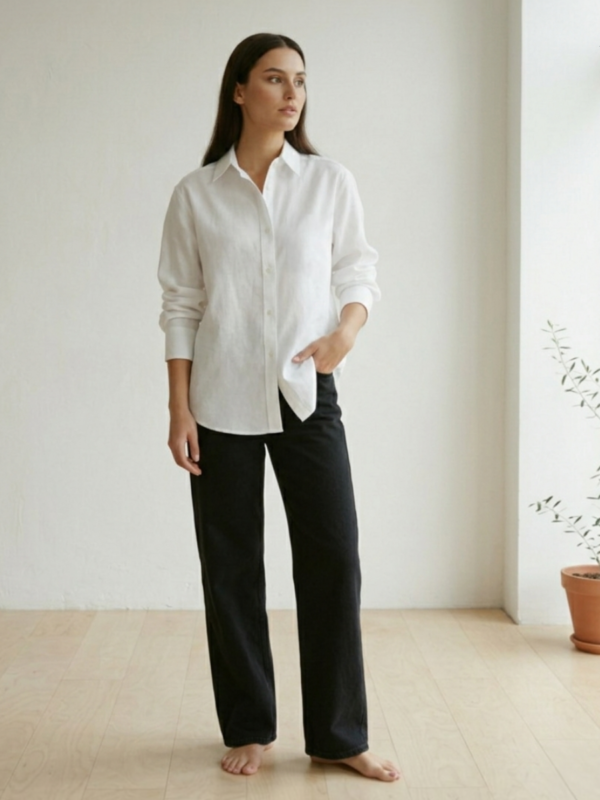 Kit para confeccionar esta camisa de corte elegante, limpio y moderno inspirada en los códigos de las camisas clásicas masculinas con: