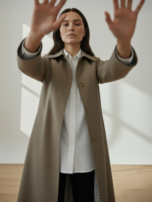 Kit para confeccionar esta gabardina minimalista y moderna de ajuste relajado inspirada en las gabardinas clásicas inglesas con: