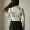 • Tejido de punto acanalado suave y gustoso 95% algodón orgánico + 5% elastan (tejido negro) / Tejido de punto acanalado suave y gustoso 95% LENZING™ TENCEL™ + 5% elastan (tejido rayas)
